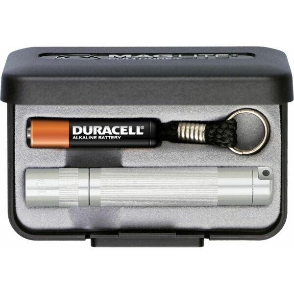 Aluminium Maglite Solitaire zaklamp met sleutelring en verstelbare lichtbundel. Individueel verpakt in geschenkverpakking. Inclusief batterijen.