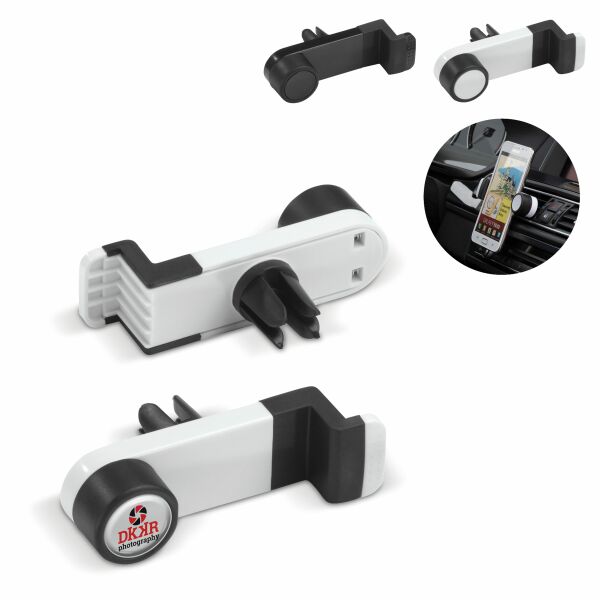 Smartphonehouder met veer. Zo is het ventilatierooster in de auto in een handomdraai om te bouwen tot een hands-free carkit.